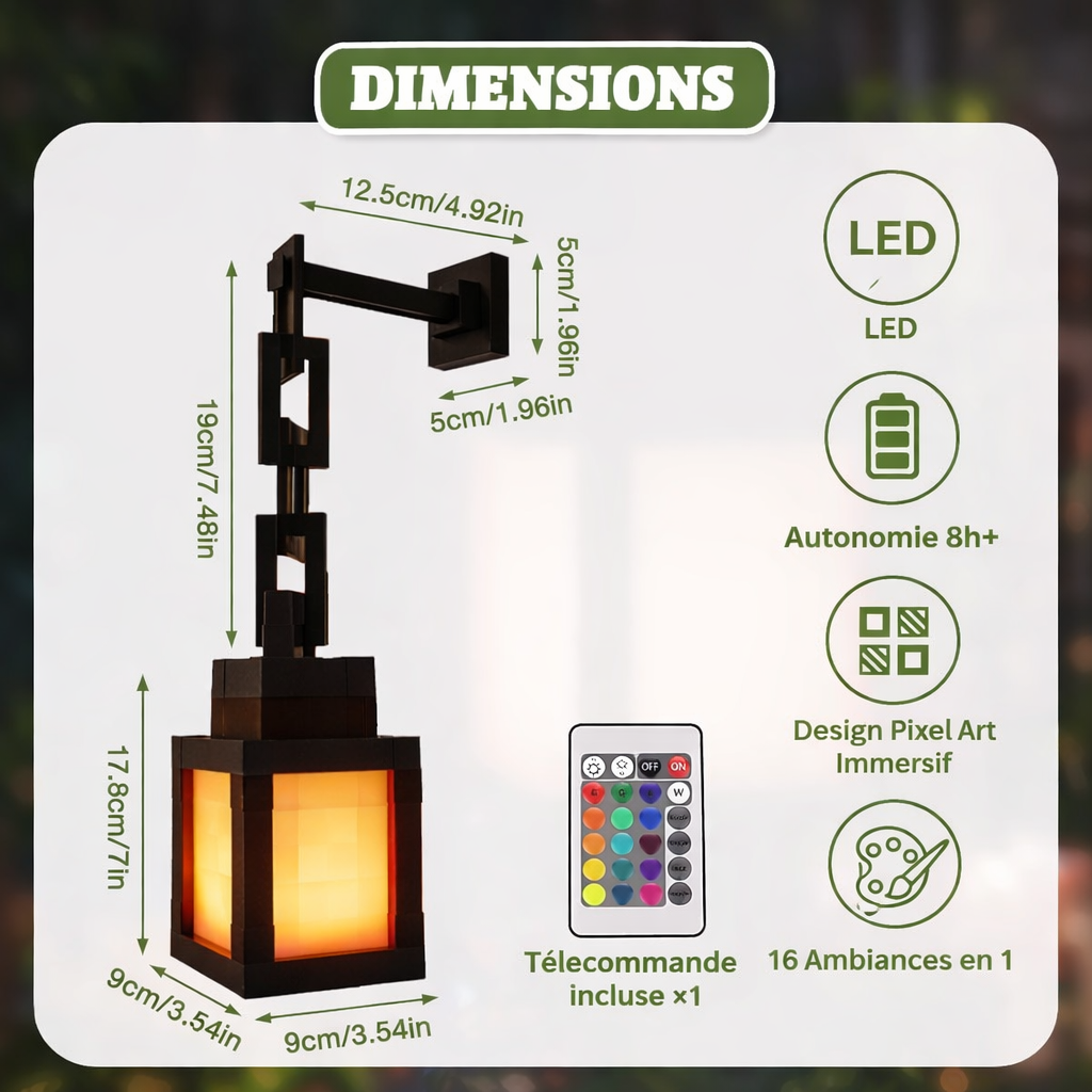 Transformez instantanément votre bureau ou salon. Grâce à sa batterie intégrée et sa télécommande, installez cette lanterne pixel partout, sans fil apparent pour gâcher le décor. Choisissez parmi 16 couleurs vibrantes pour une immersion totale qui colle exactement à votre humeur.