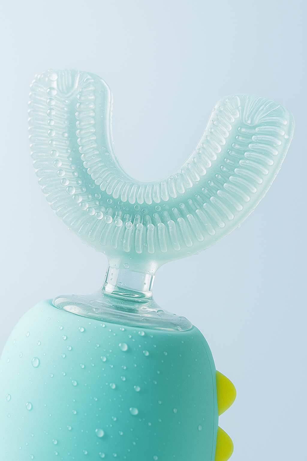 Gentle silicone protects gums while the U-shape cleans every tooth at once.